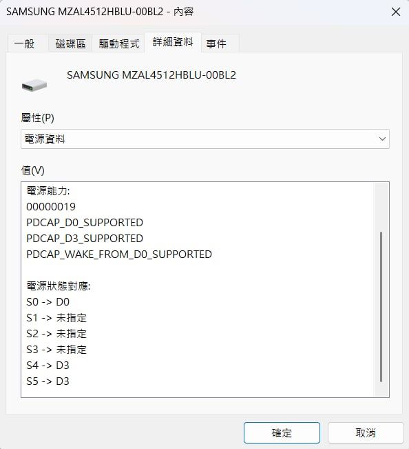 查询硬碟的电源状态如下