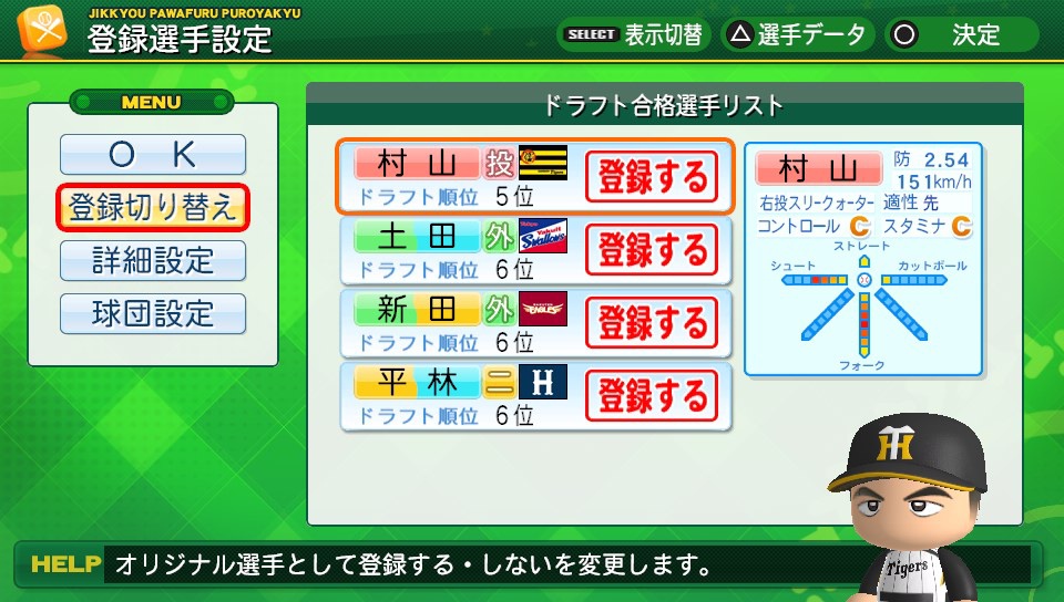 卒业式确认进职业的选手时,选详细设定