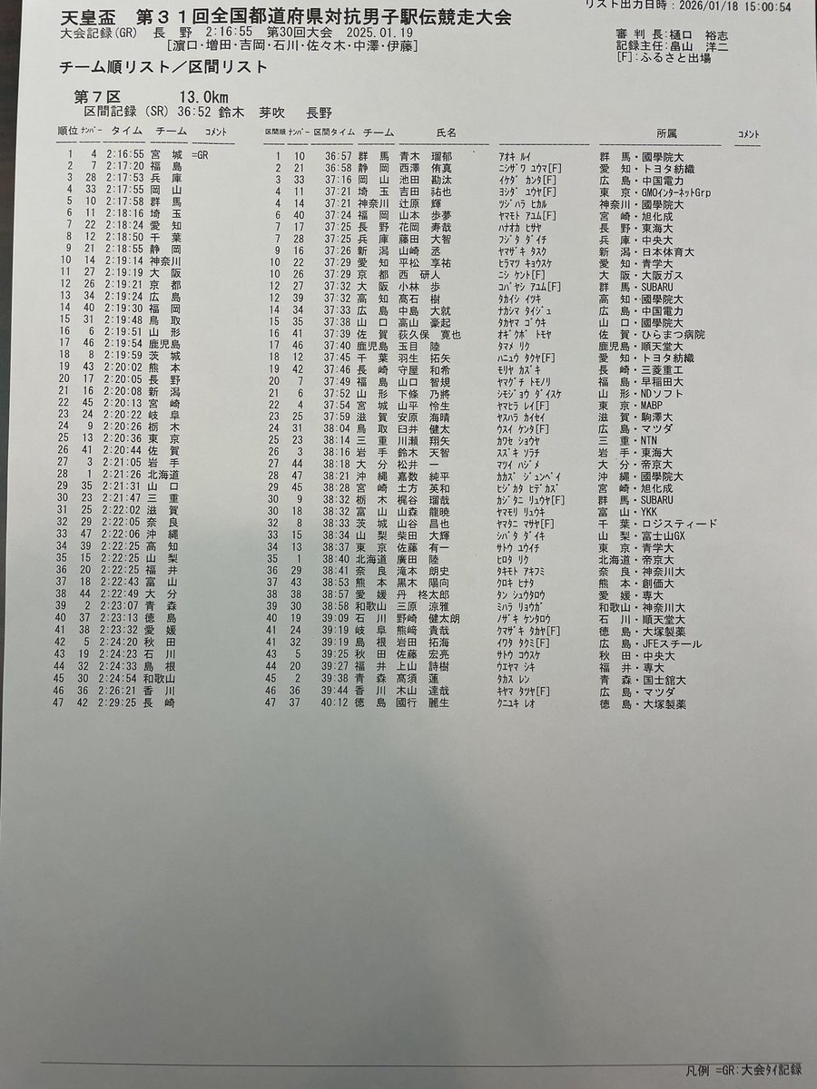 47都道府综合成绩参考(综合48KM/ 一般21.5KM/ 高校20.5KM/ 中学/6.0KM)