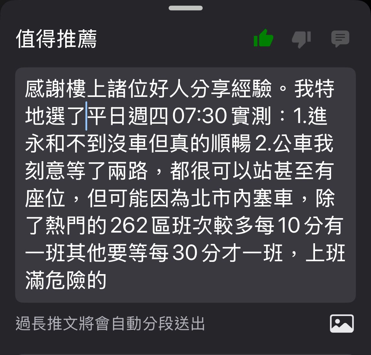 18F:→ apriori: 都很可以站甚至有座位,但可能因为北市内塞车,除了热门 11/27 08:38