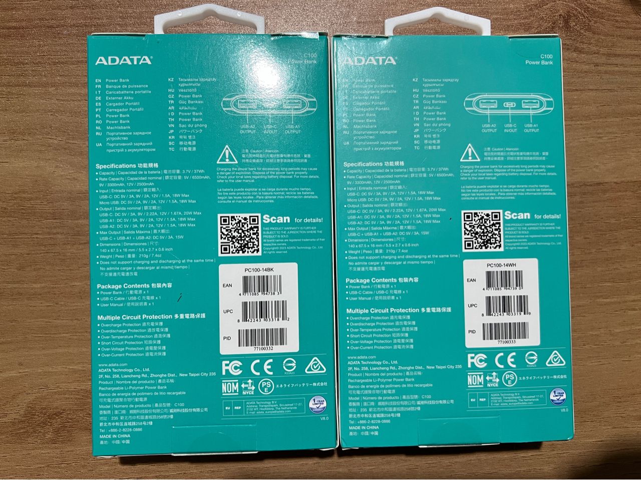 PD/QC极速快充行动电源 黑色/白色各1