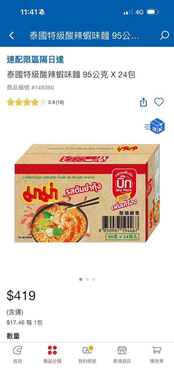 标题[合购] 好市多 泰国特级酸辣虾味面