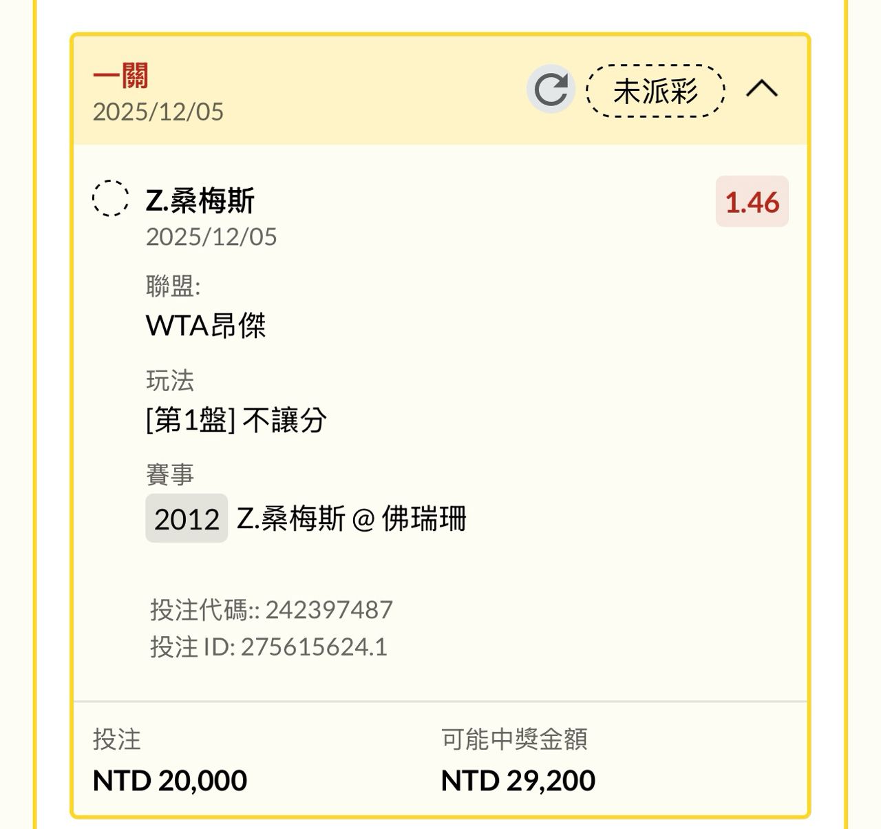 ※ 文章网址: https://webptt.com/cn.aspx?n=bbs/SportLottery/M.1764933754.A.A6C.html