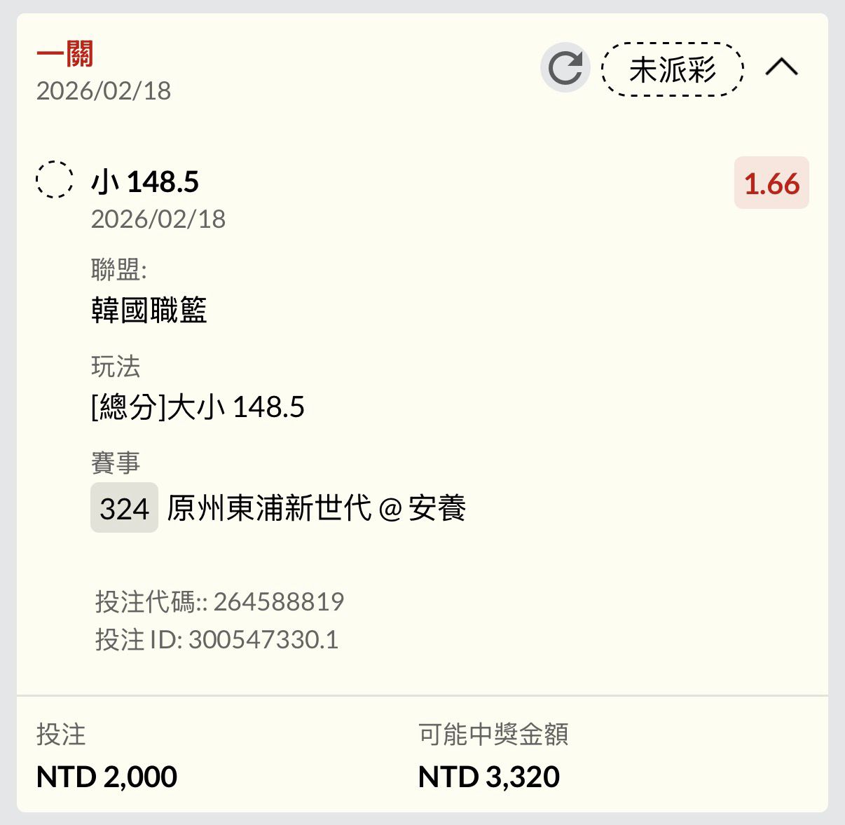 ※ 文章网址: https://webptt.com/cn.aspx?n=bbs/SportLottery/M.1771391131.A.0AB.html