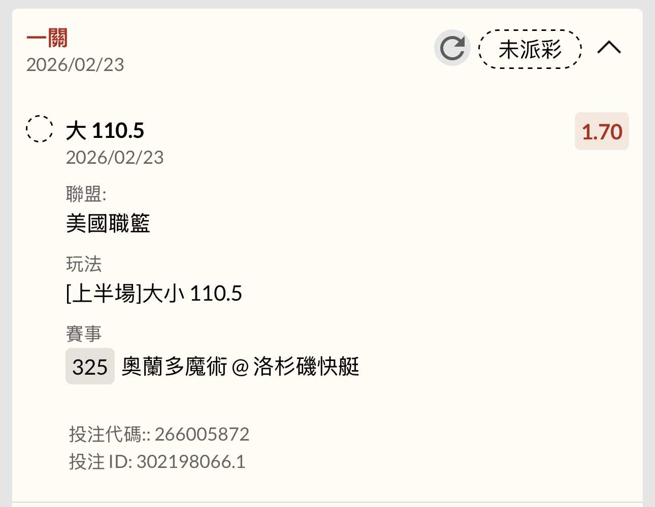 ※ 文章网址: https://webptt.com/cn.aspx?n=bbs/SportLottery/M.1771800697.A.BA2.html