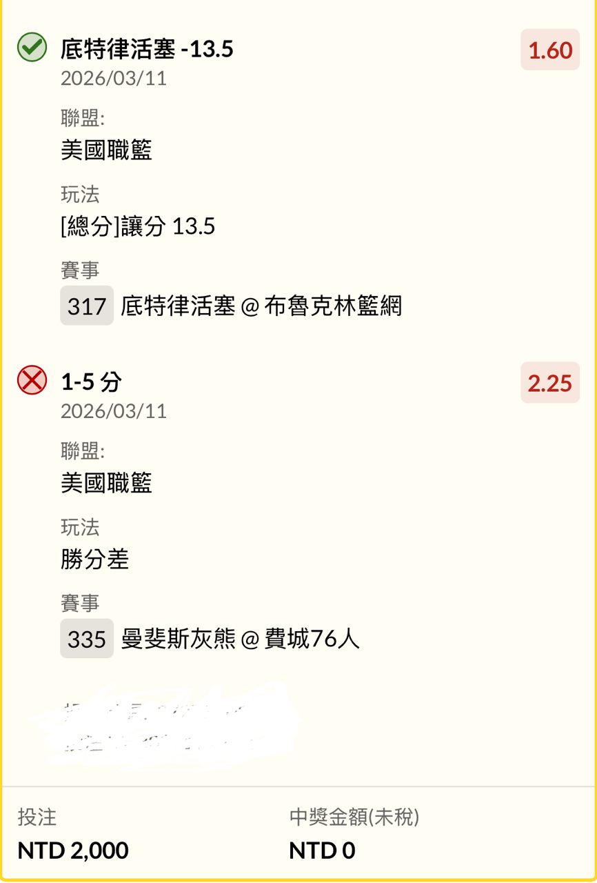 ※ 文章网址: https://webptt.com/cn.aspx?n=bbs/SportLottery/M.1773219517.A.95F.html