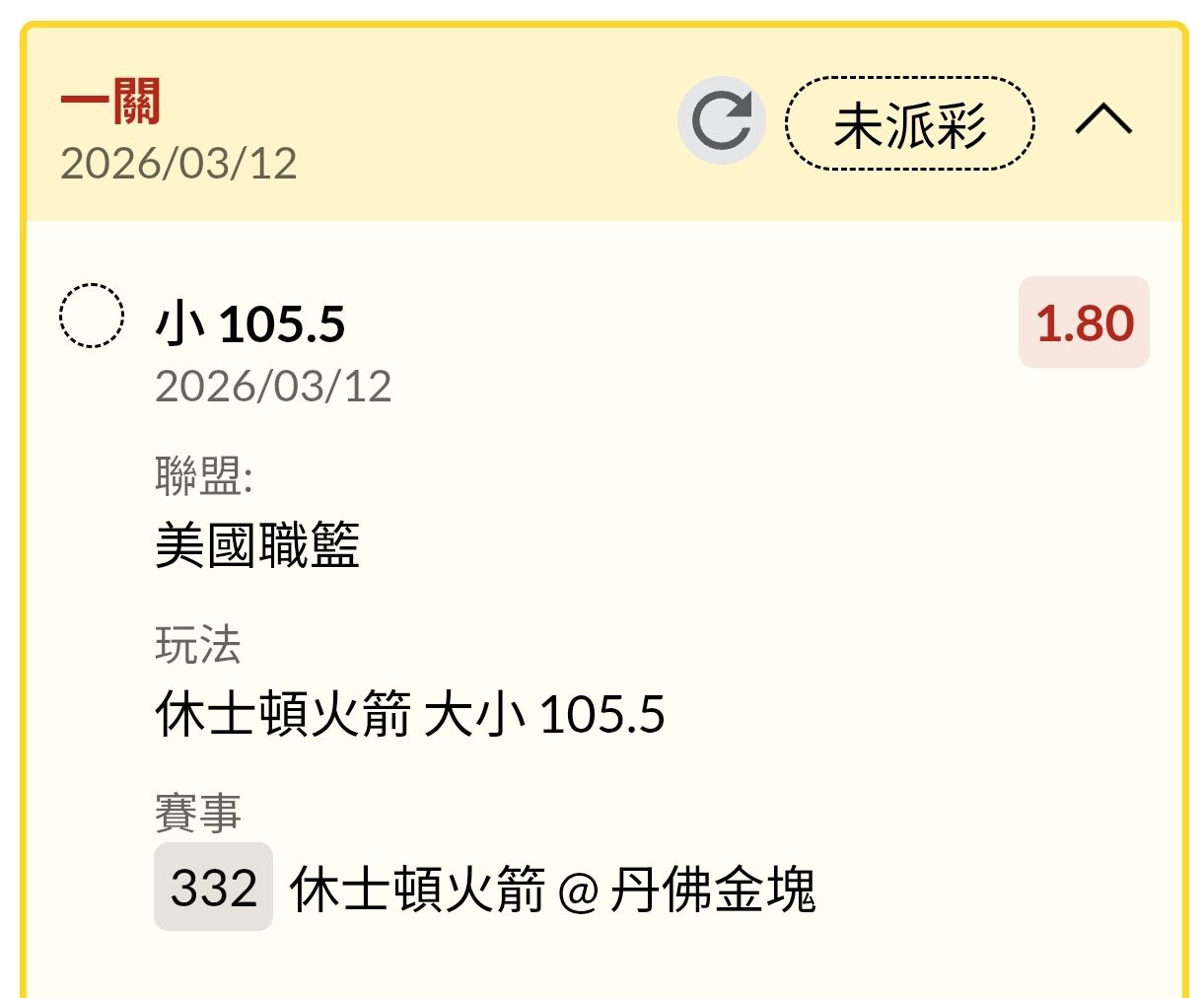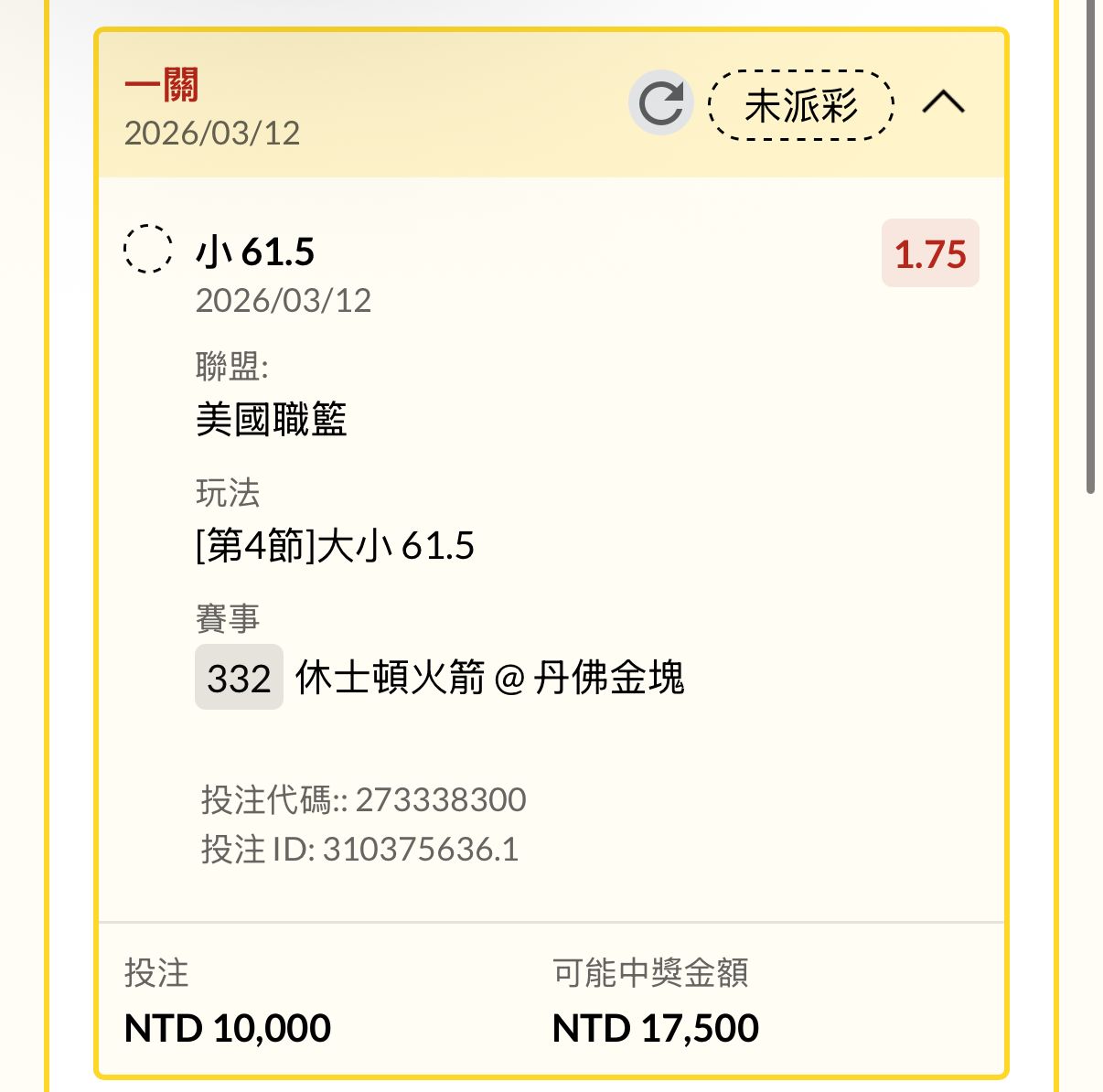 ※ 文章网址: https://webptt.com/cn.aspx?n=bbs/SportLottery/M.1773279441.A.4A8.html