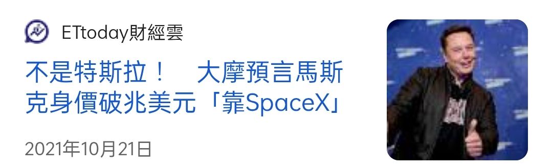 149F:推 KylianMbappe: Tesla上市没跟到,Space X上市跟紧了 12/06 12:18