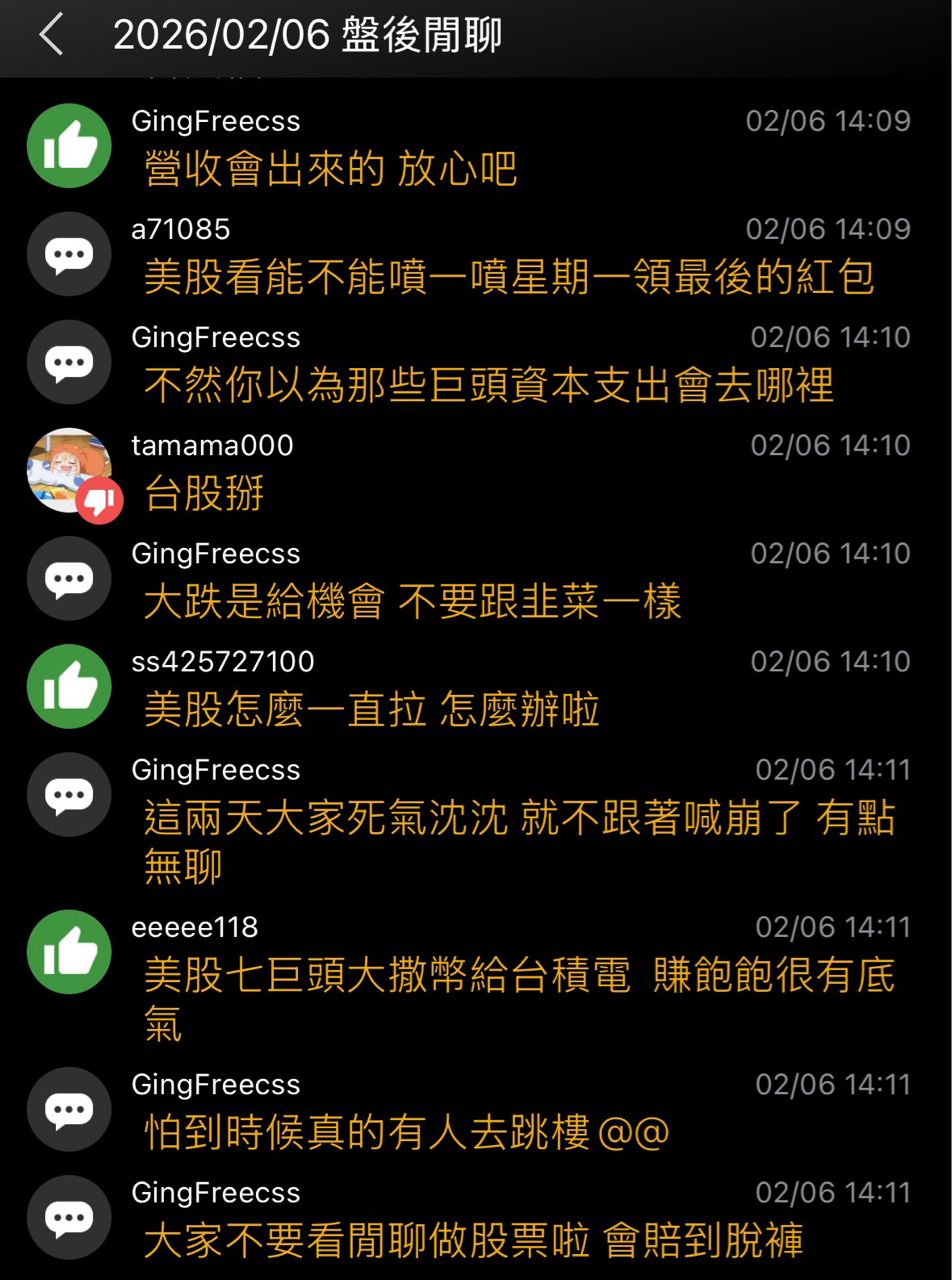 标题[闲聊] 2026/02/06 盘後闲聊