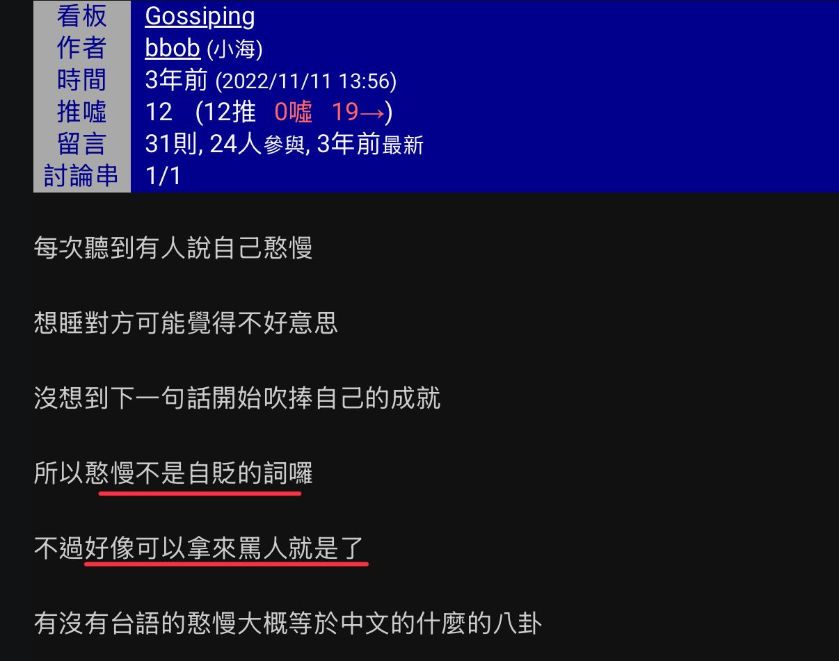 1F:推 esso78124: 憨m是谁啊?上述举的例子也不是全用"憨m"的留言去留言 01/11 12:17