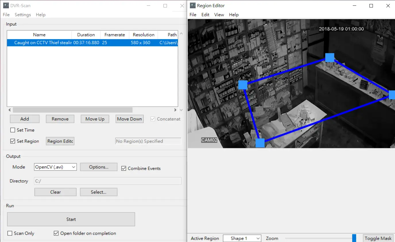 我们可以利用软体框定出需要侦测的范围,然後提取出侦测范围中监视器画面有变化或位移的片段(例如:设定药局的柜台区域),并将片段合并为一整段影片档。使得我们只需要观看监视器画面有变动的片段(有人经过监视器画面或有动物经过监视器画面),如此一来就能大幅缩短我们监视器的时间。