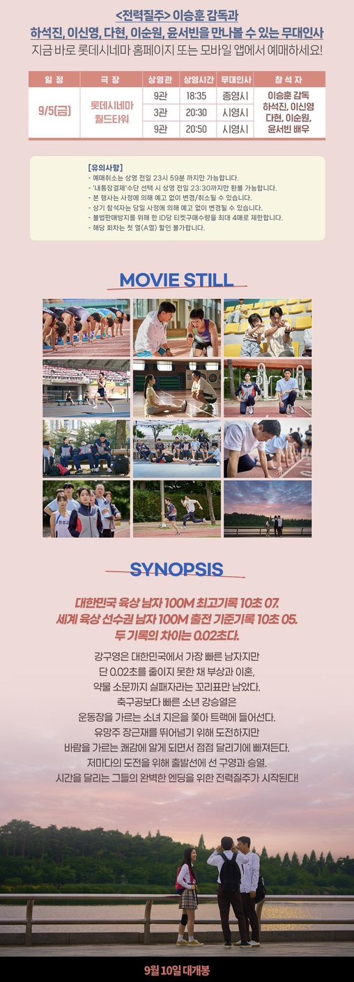 <1> 《全力奔跑》舞台问候! 9月5日,去见大家 我们在乐天影院世界塔见吧! 舞台问候日程 9月5日 (星期五) 详细的日程及预售请在剧场网站或APP上确认!