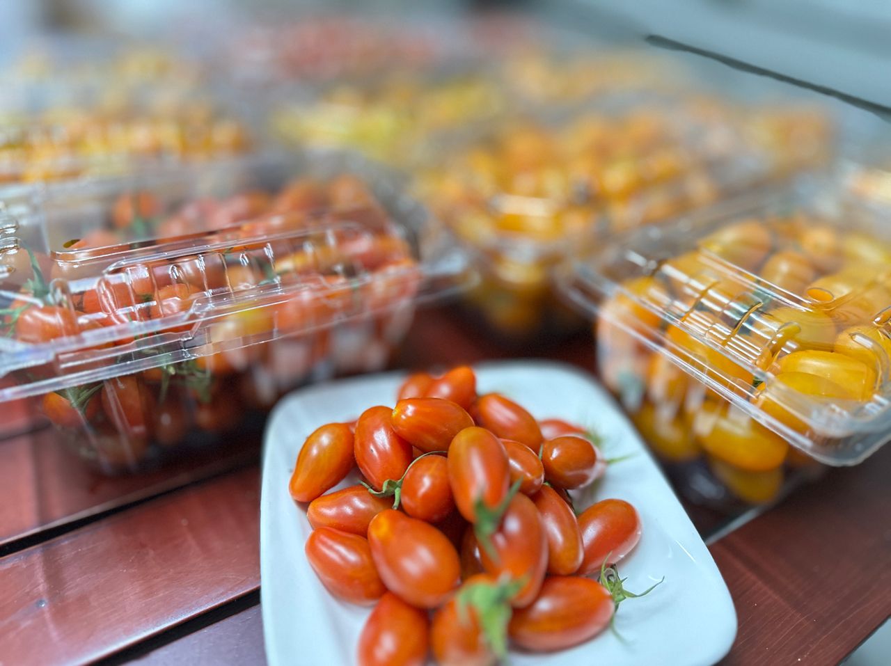 1.红色玉女番茄一盒100/1斤