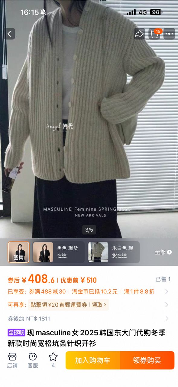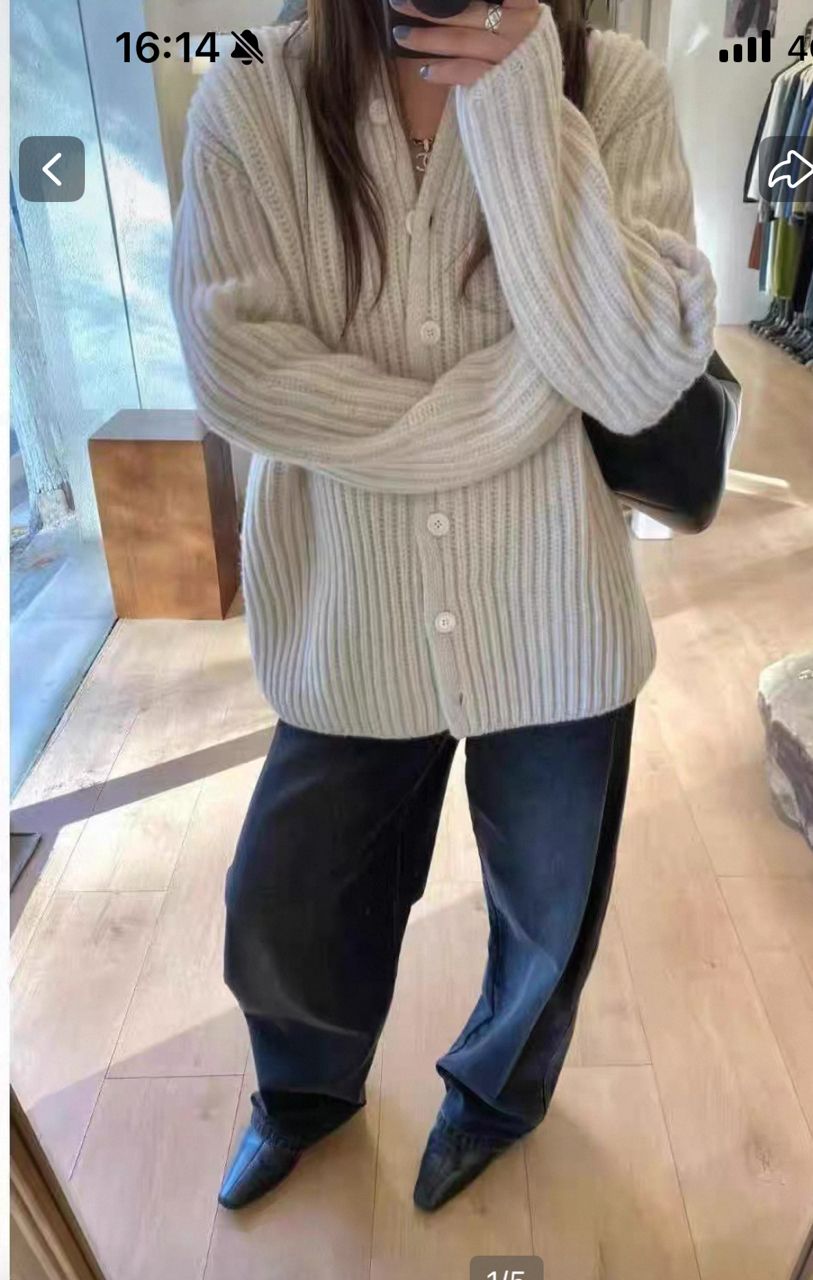 1正韩厚磅宽松钮扣针织开衫