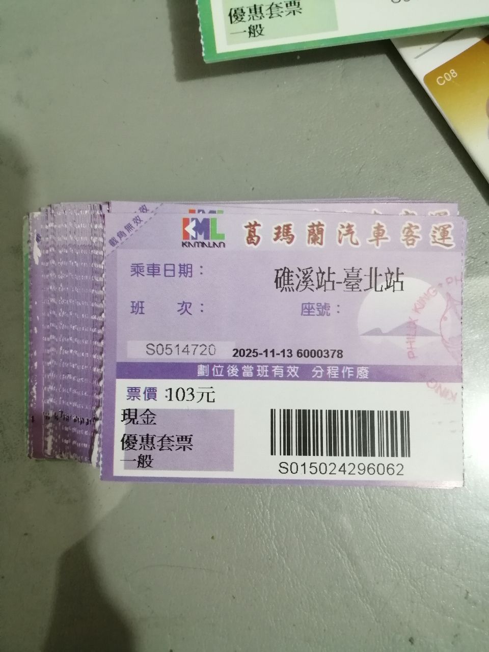 标题[交易] 葛玛兰客运礁溪至台北回数票