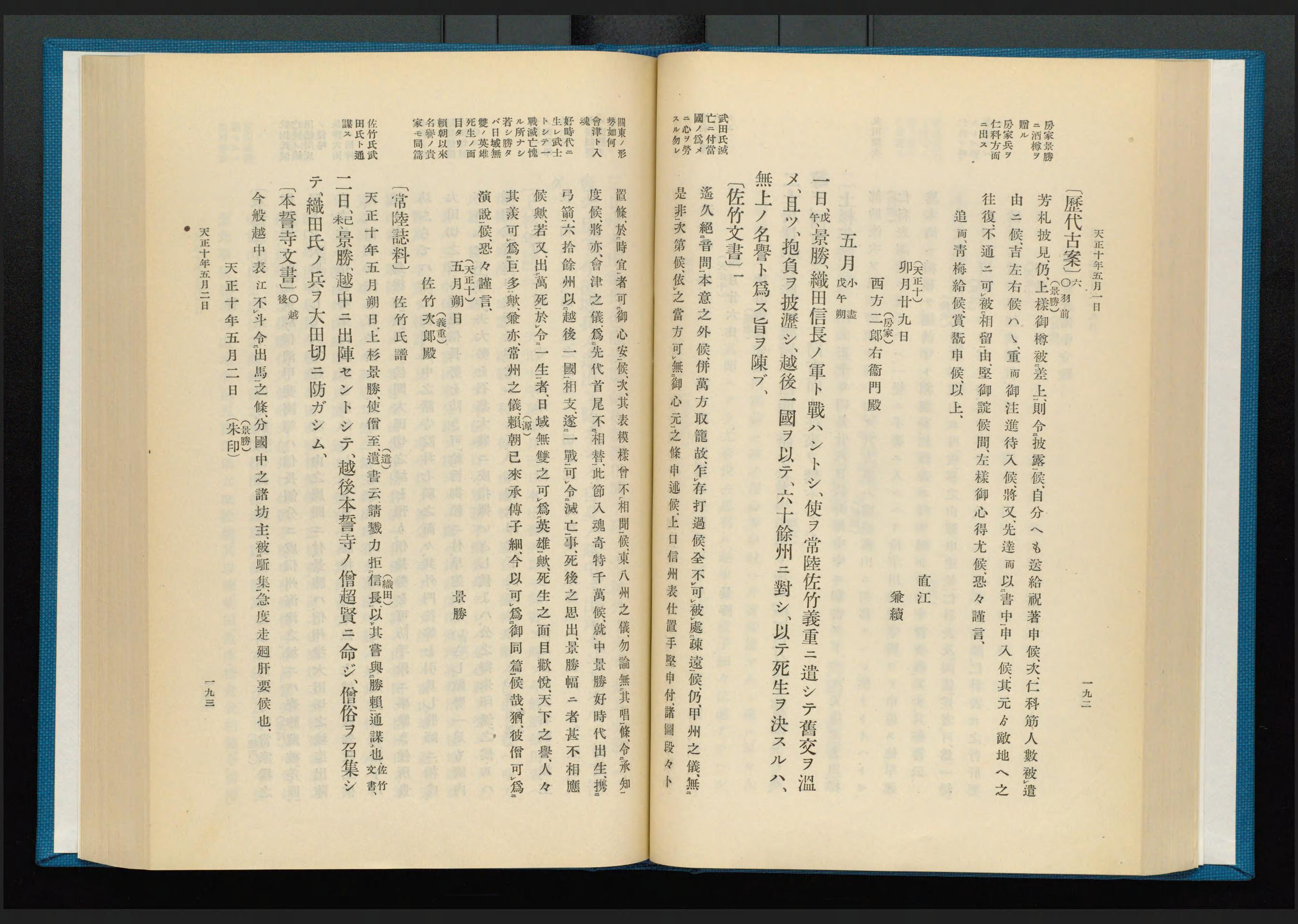 両州诸家、过半被申合御挨拶被申候、年来信长様御入魂ニ候条、弥々天下一统之御驰走