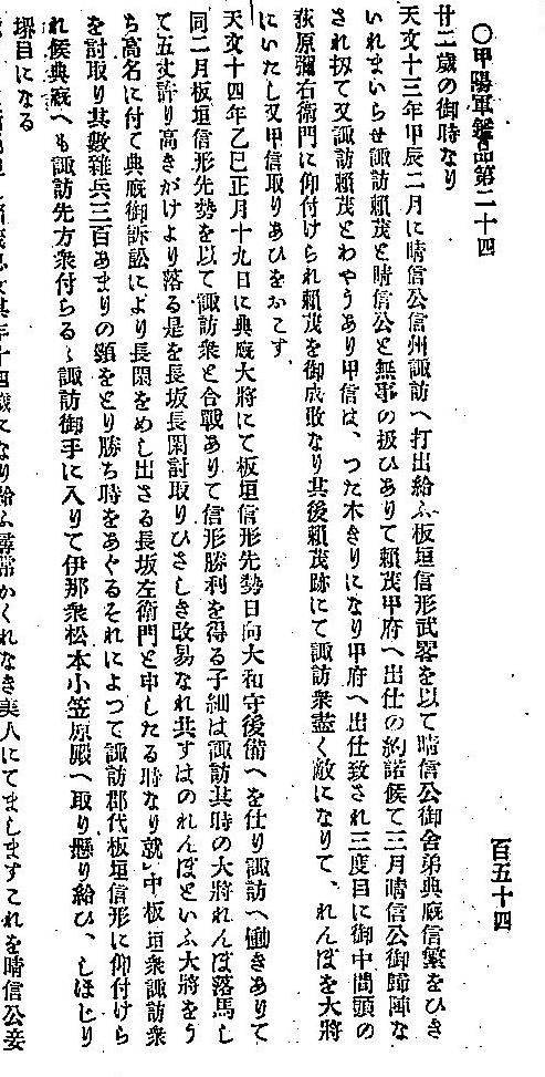 时代纪录的证实,但很怪异的是『甲阳军监』里,诹访氏的灭亡及其领地被武田家完全占