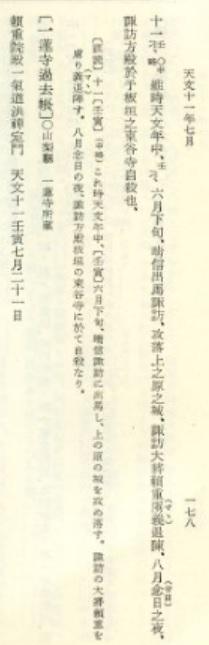 领之事又推迟到天文十三年,诹访赖重的身亡虽未直接撰述,但赖重的死亡很明显是在天