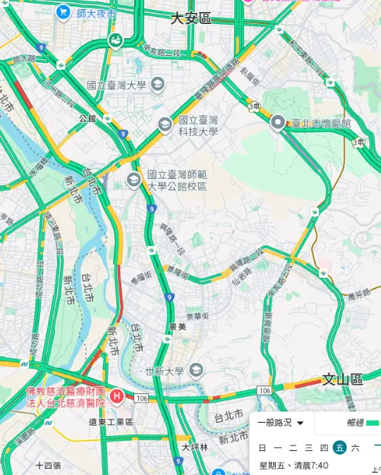 37F:→ mstar : 今天罗斯福路比较顺了,不过福和桥、基隆路还是塞。 10/01 10:36