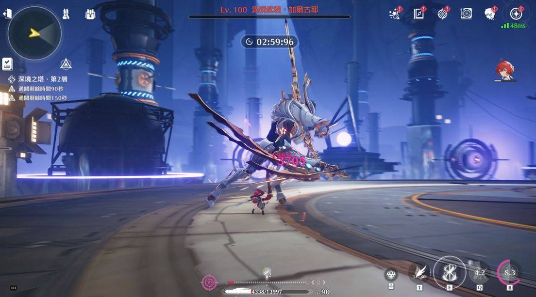 打法上可多注意,在泰媞斯飞天时的浮游炮攻击,都能用闪避反击偷个几万伤害,