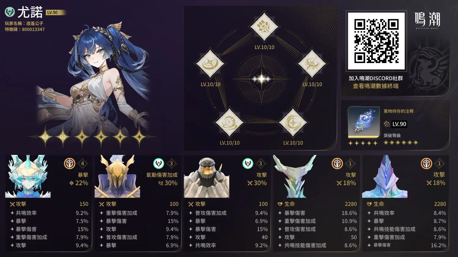 最後,感谢我的朋友「欢乐狗勾号」贤伉俪的欧气大手,帮我10抽出尤诺专武