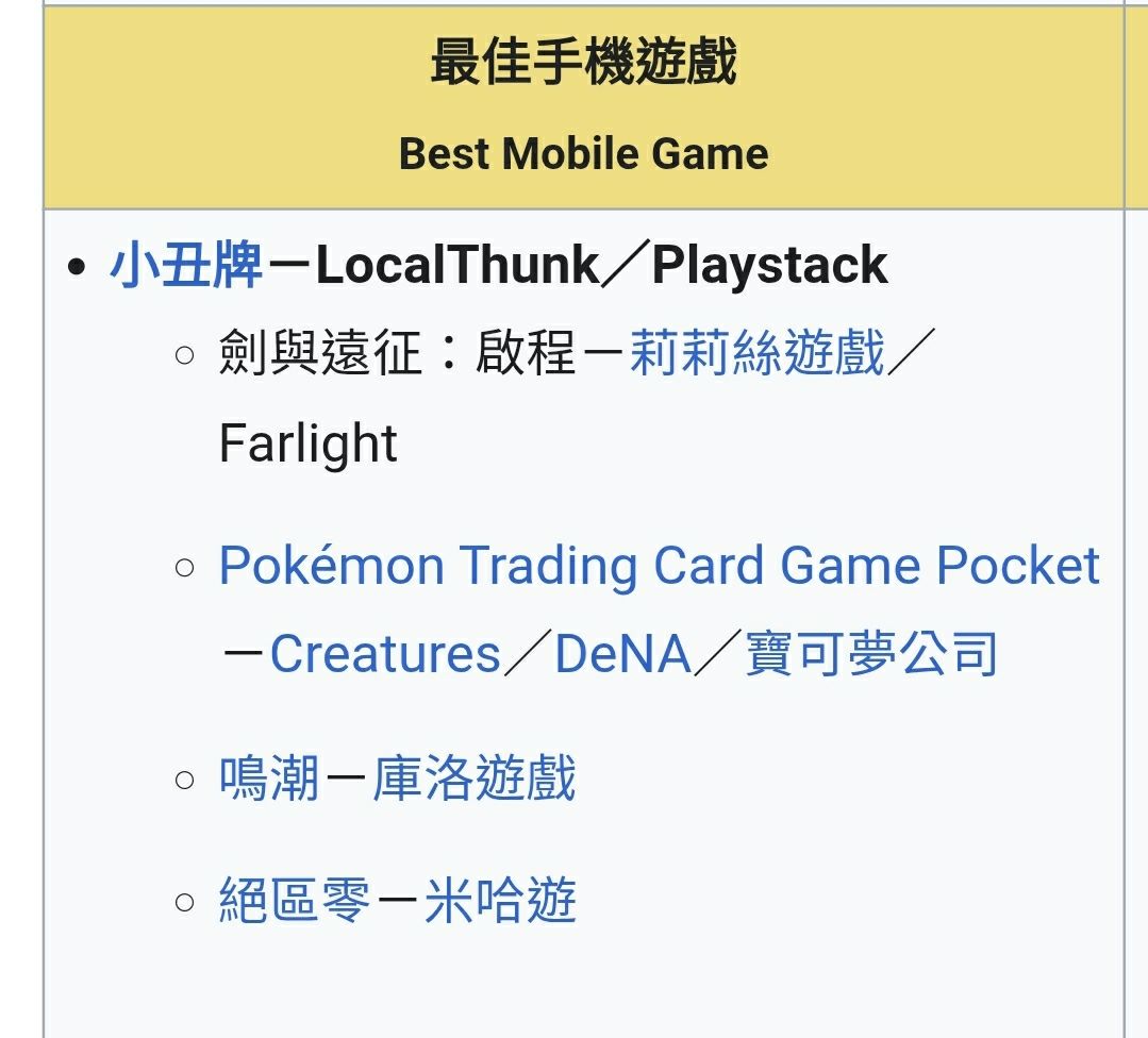 标题[闲聊] 鸣潮再次入围 TGA最佳手机游戏!