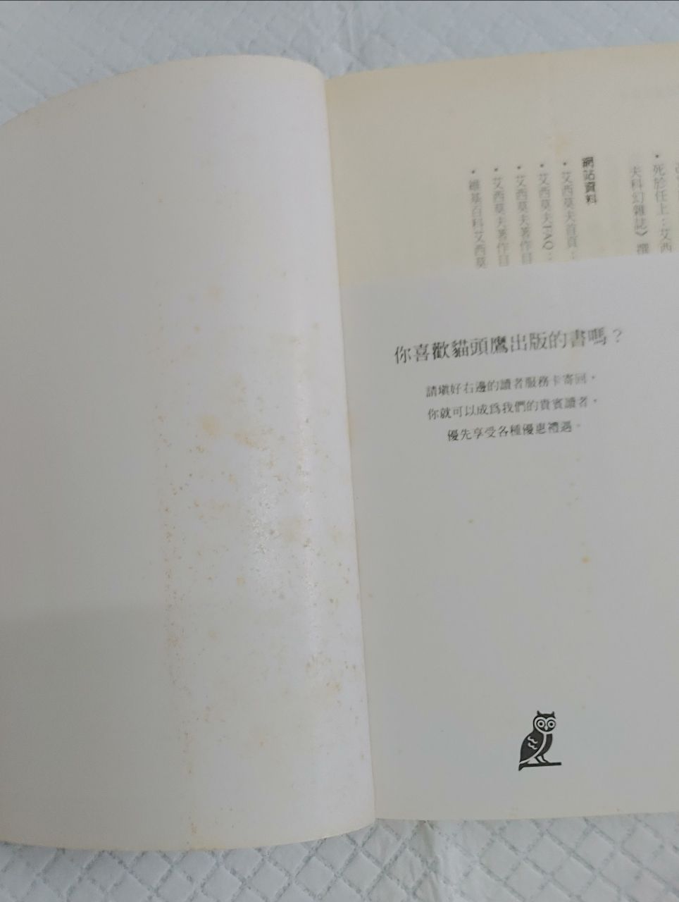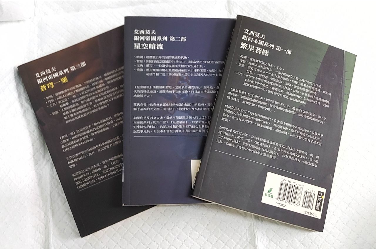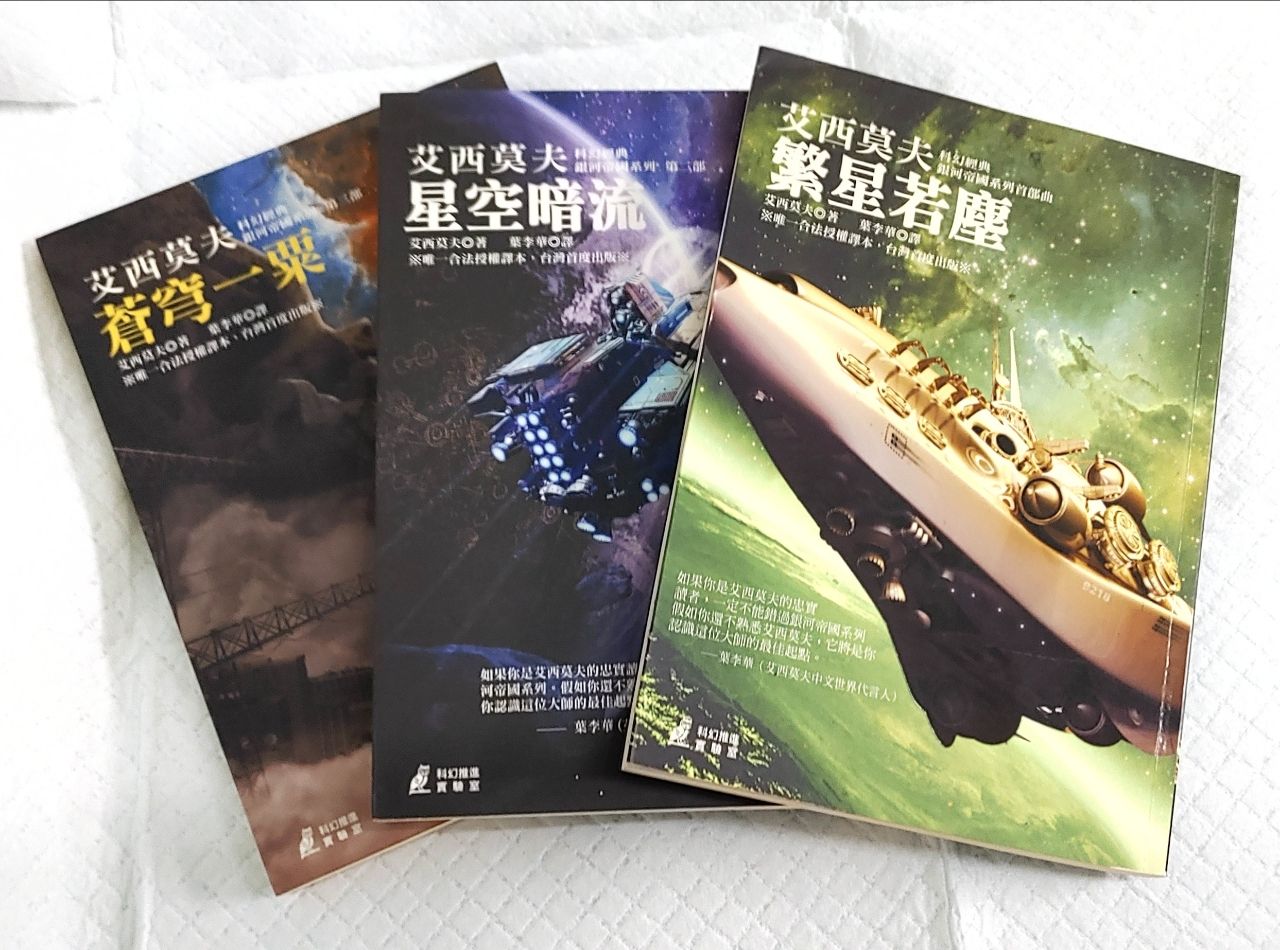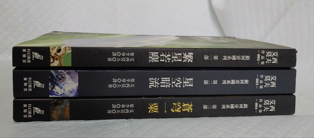 (银河帝国三部曲) 繁星若尘、星空暗流、苍穹一粟 (以撒.艾西莫夫(Isaac Asimov)) 轻度泛黄、书斑。 繁星若尘 : 下扉页中度书斑,图7。 苍穹一粟 : 上、下扉页中度书斑,图8、图9。 售$700。 赠书一本:海天龙战(叶言都),全新未翻阅,封底有赠品贴纸。 交易方式: 7-11卖货便,运费 : $38。 请站内信联络。 谢谢。