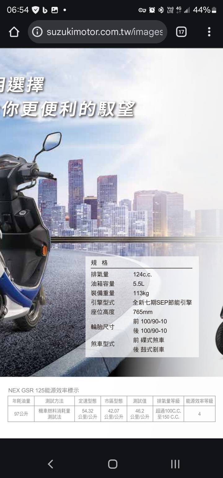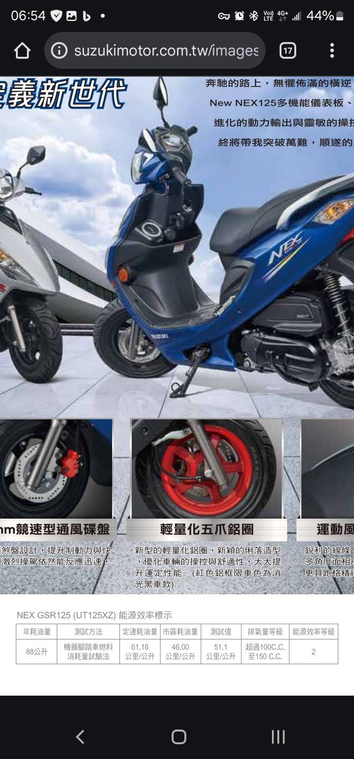 目前用车是GSR 125,已使用17年,整体骑乘感还不错,所以选车时就直接把NEX列入