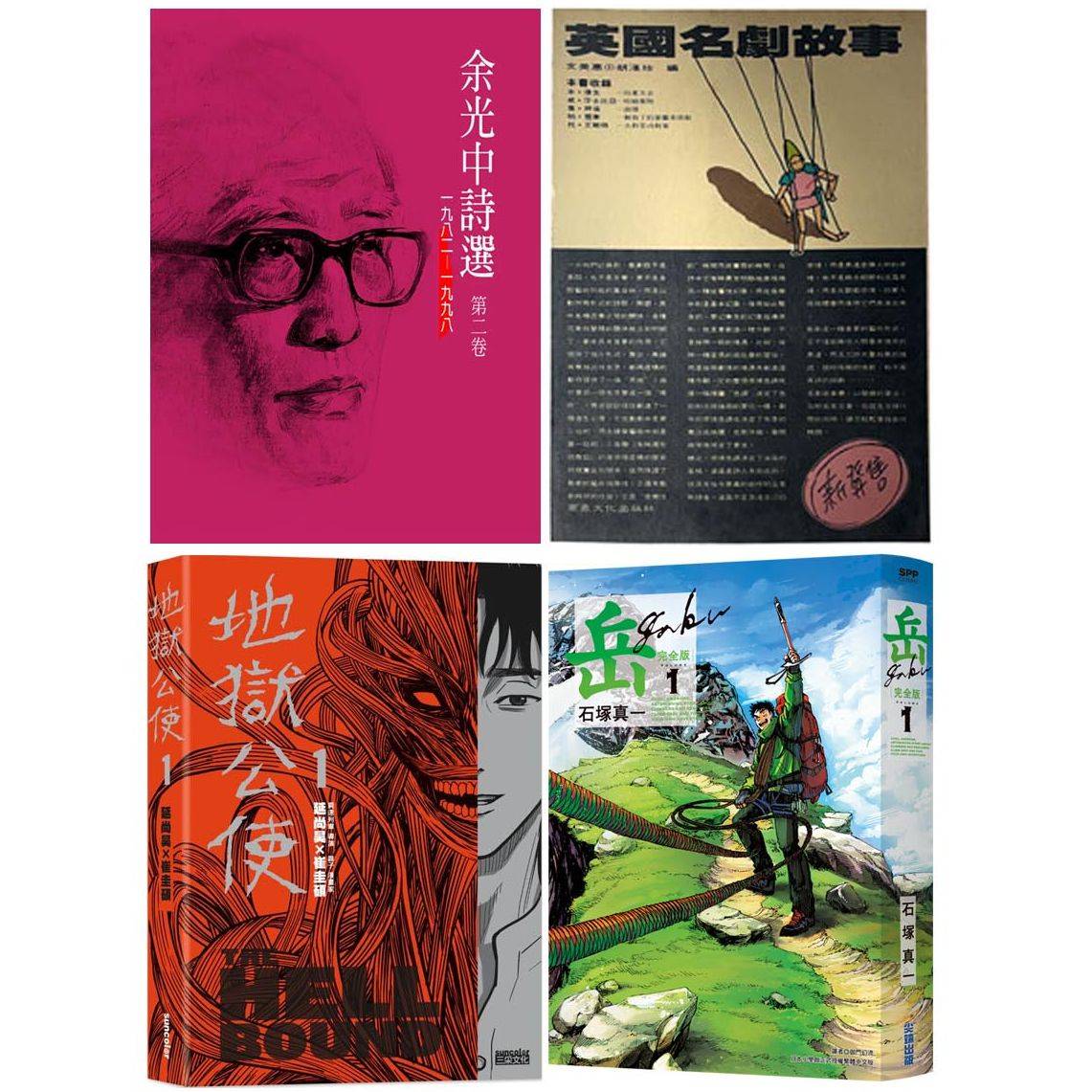 《余光中诗选》、《英国名剧故事》、《地狱公使》、《岳》。