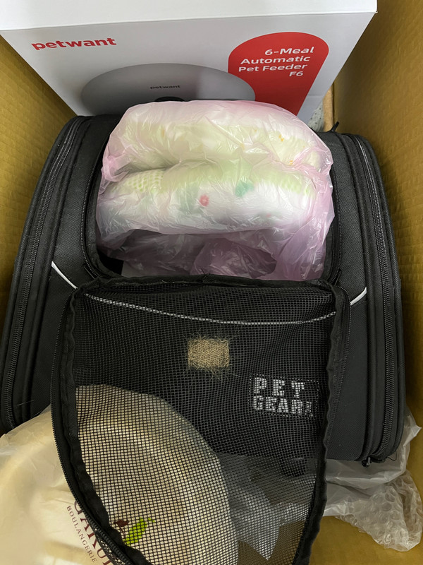 手拉车的款式应该是 PG-1240,7 公斤的猫没问题,背带下方有破损,还是可以背