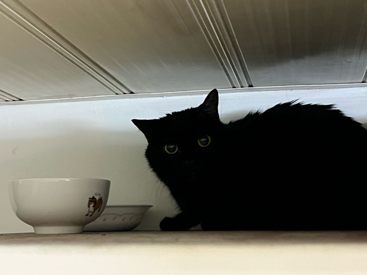 七月诱捕到的黑猫,有天发现她走路摇晃,送医住院观察。晚间插鼻胃管的时候稍微休克