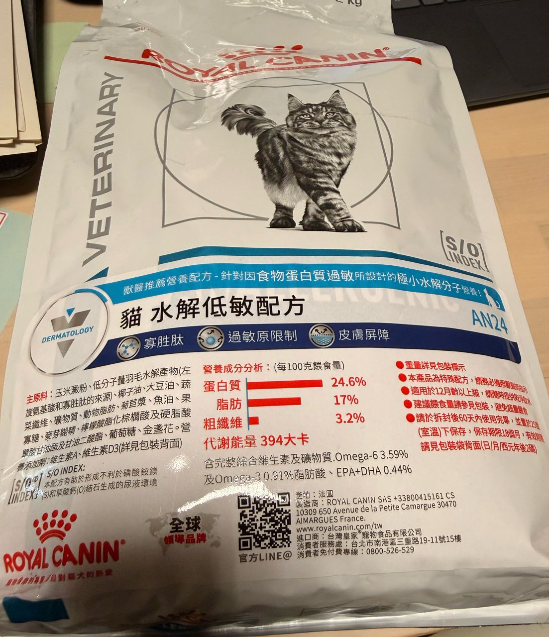 物品名称: 【ROYAL CANIN 法国皇家 处方】猫 AN24 水解低敏 2kg 饲料|皇家