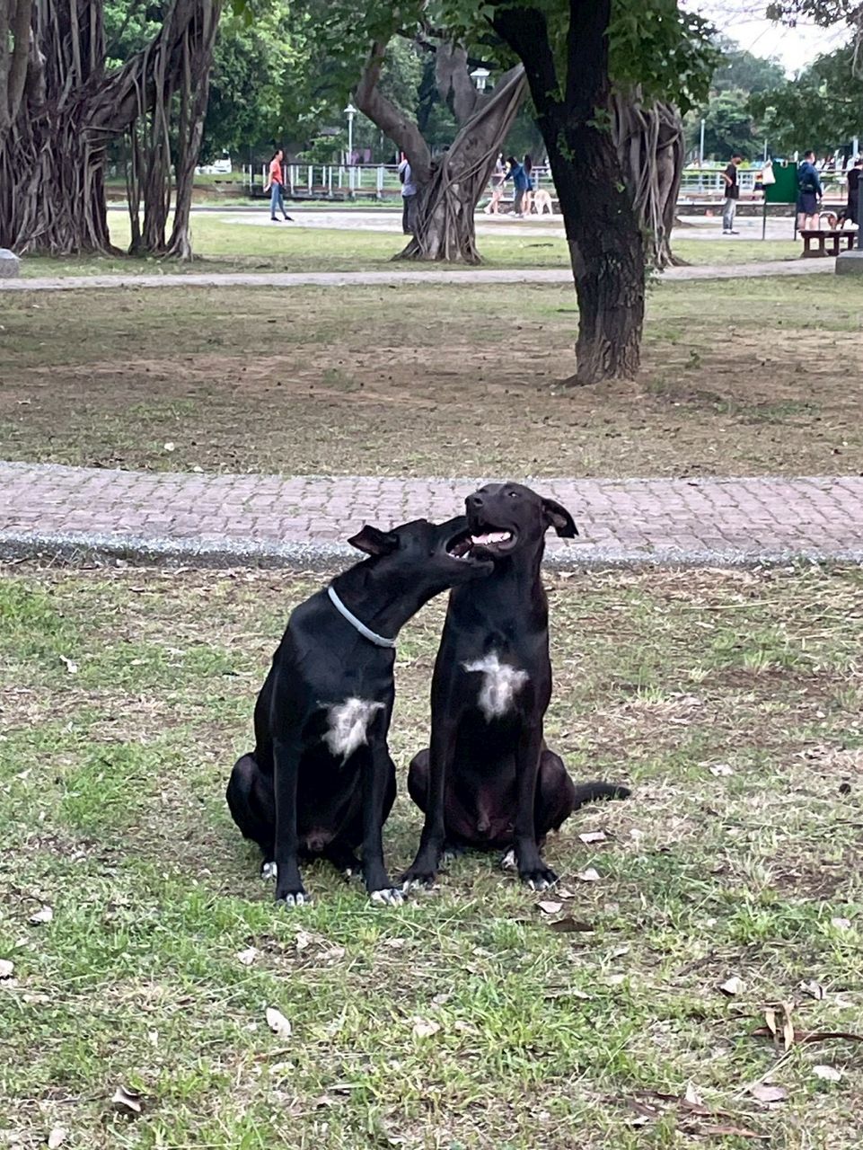 两只可爱憨厚的同胎狗是政府结紮剪耳置於台南南纺附近的平实公园,目前大概有两三年
