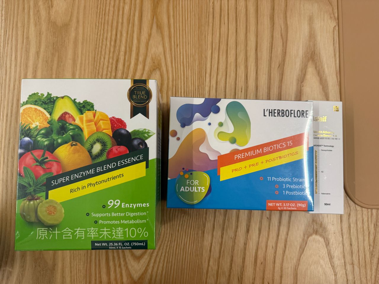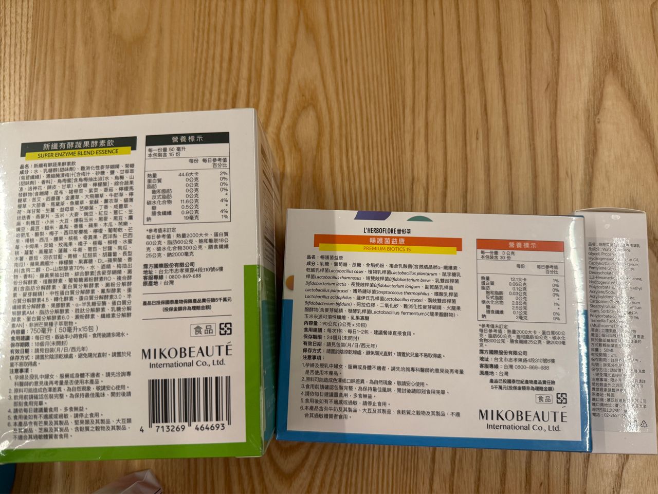 物 品:新纤有酵蔬果酵素饮、畅护菌益康、菈菈苡芙电音绷带精华乳