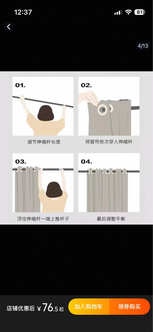 备 注:淘宝购入打孔窗帘(200cm宽 225cm高)+弹簧伸缩杆