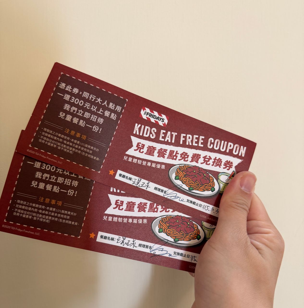 物 品:中和环球Fridays 儿童餐兑换券2张
