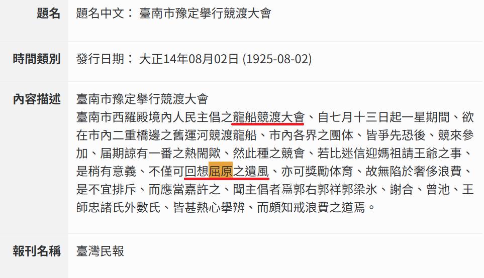 屈原故事真的是1945以後中华民国利用课本洗脑台湾人吗?龙舟真的是战後出现?