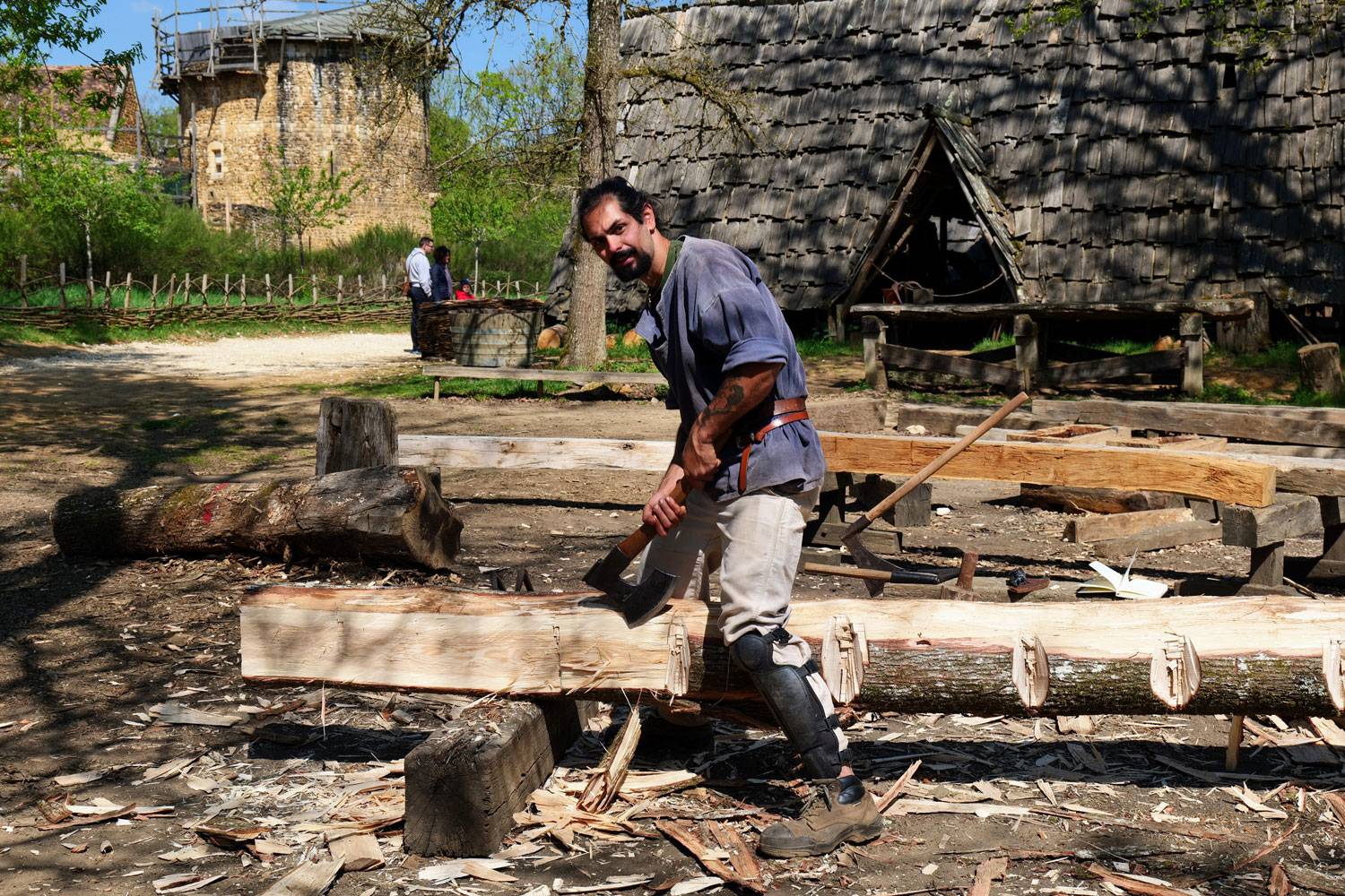 鲜砍伐且湿润,更易弯曲。工作人员带来了六十把在他们城堡锻造的特制中世纪斧头,供