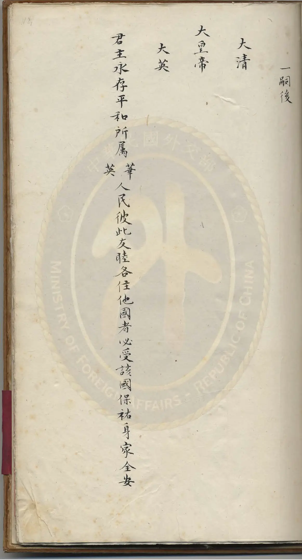26F:→ moslaa: 下图是近代第一个中外条约(如果不算尼布楚)南京条约第一条 01/05 15:56