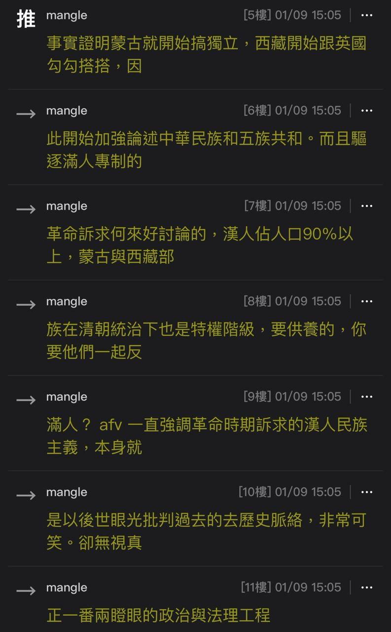 18F:推 mangle: by the way 好不容易从千年封建极致的清朝走向共和民主, 01/10 03:32