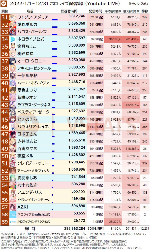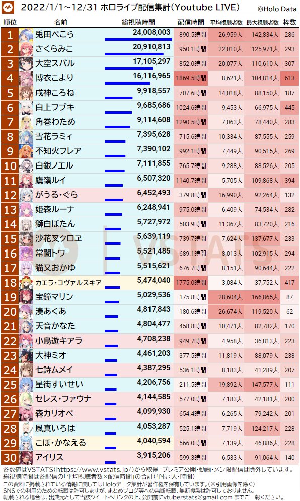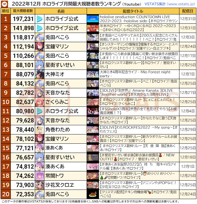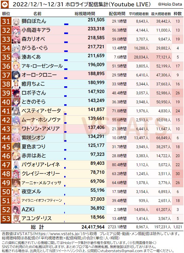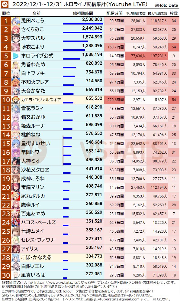 [闲聊] Hololive 12月数据整理