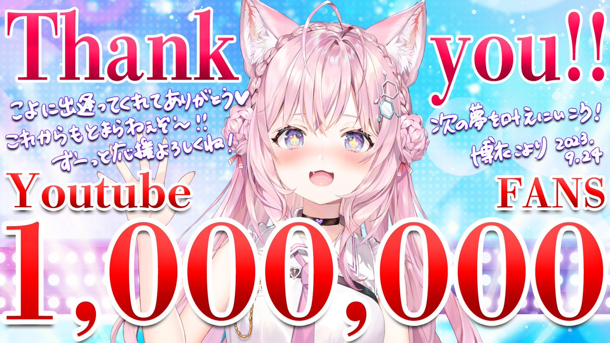 Koyori YouTube频道100万订阅达成