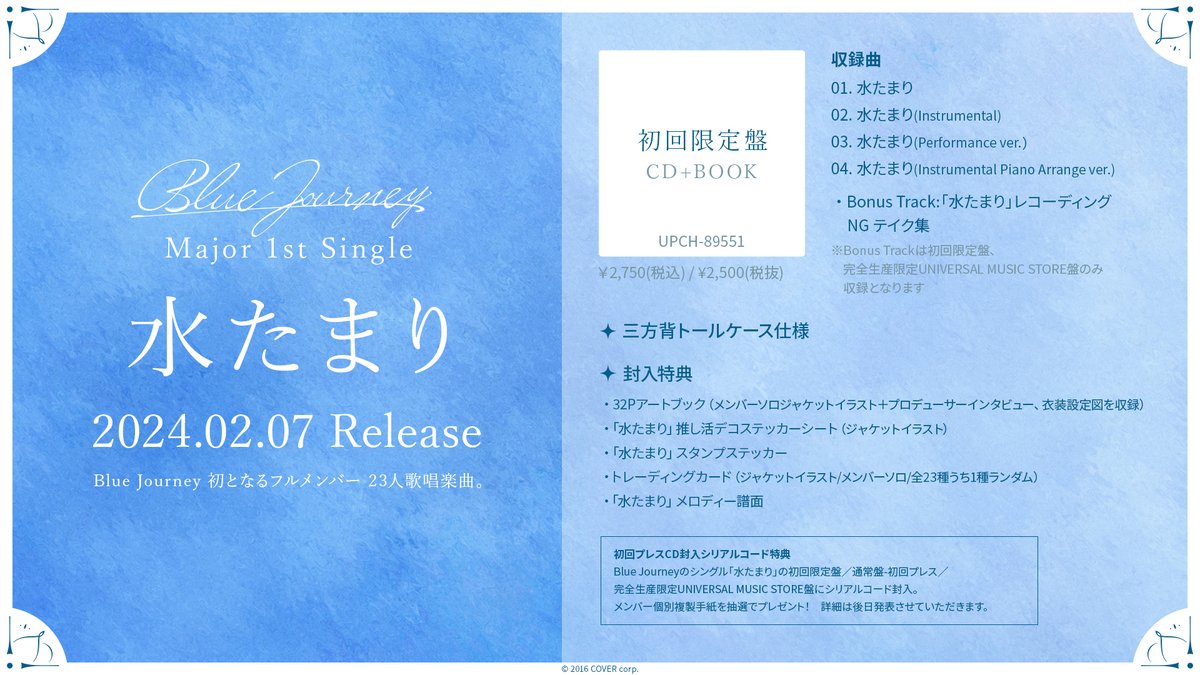 Blue Journey单曲"水たまり"开始预购,将於2/7发售