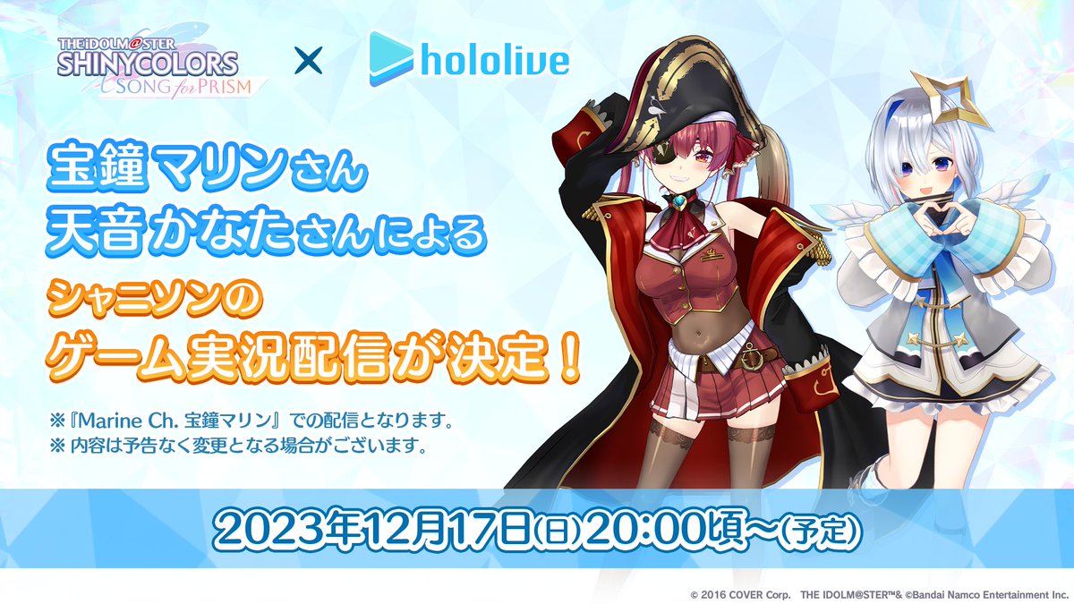Marine & Kanata将於12/17 19:00与偶像大师 闪耀色彩工商合作直播