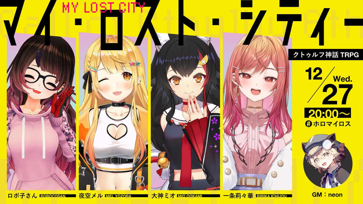 Mel、Roboco、Mio & Ririka将於12/27 19:00直播TRPG"マイ・ロスト・シティー"