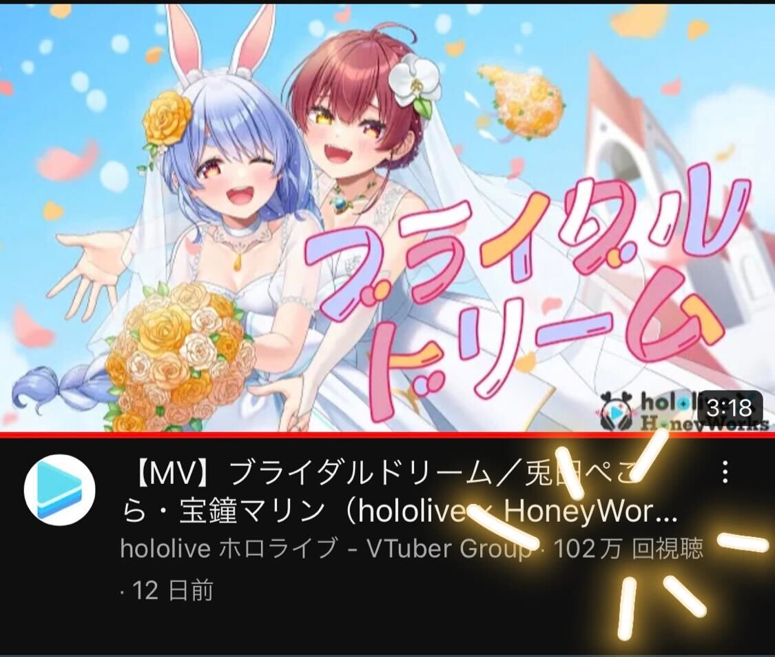 Pekora x Marine合作原创"ブライダルドリーム"100万播放达成