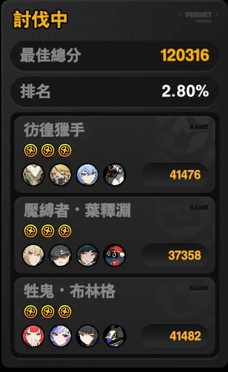 珂蕾妲打失衡太快都集不到大 猫猫虽然吃物抗 有3星监视布和般岳 击破速度是够的