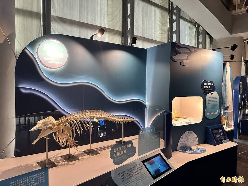 特展内容丰富,深入浅出地介绍这群「重返海洋族群」(记者蔡宗宪摄)