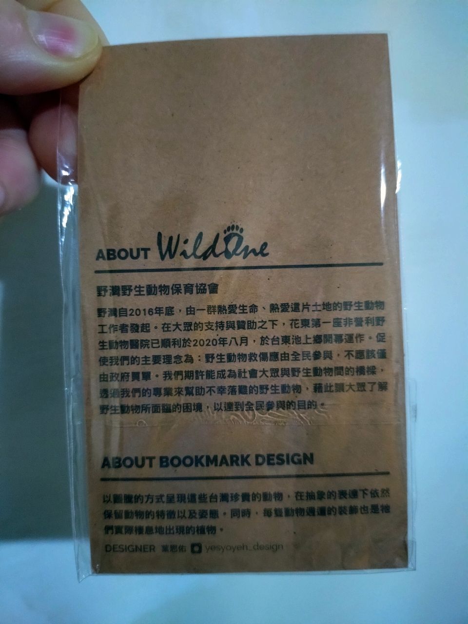 备 注:WildOne野湾动物保育协会出品的,每个书签都有手掌心大