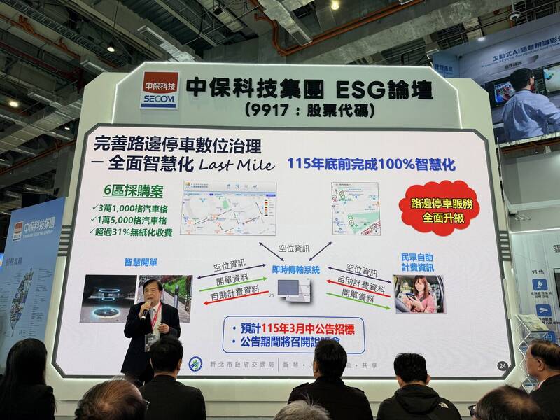 锺鸣时说,新北市近年推动停车智慧设备升级,强化路侧及路外停车场管理功能,并建置